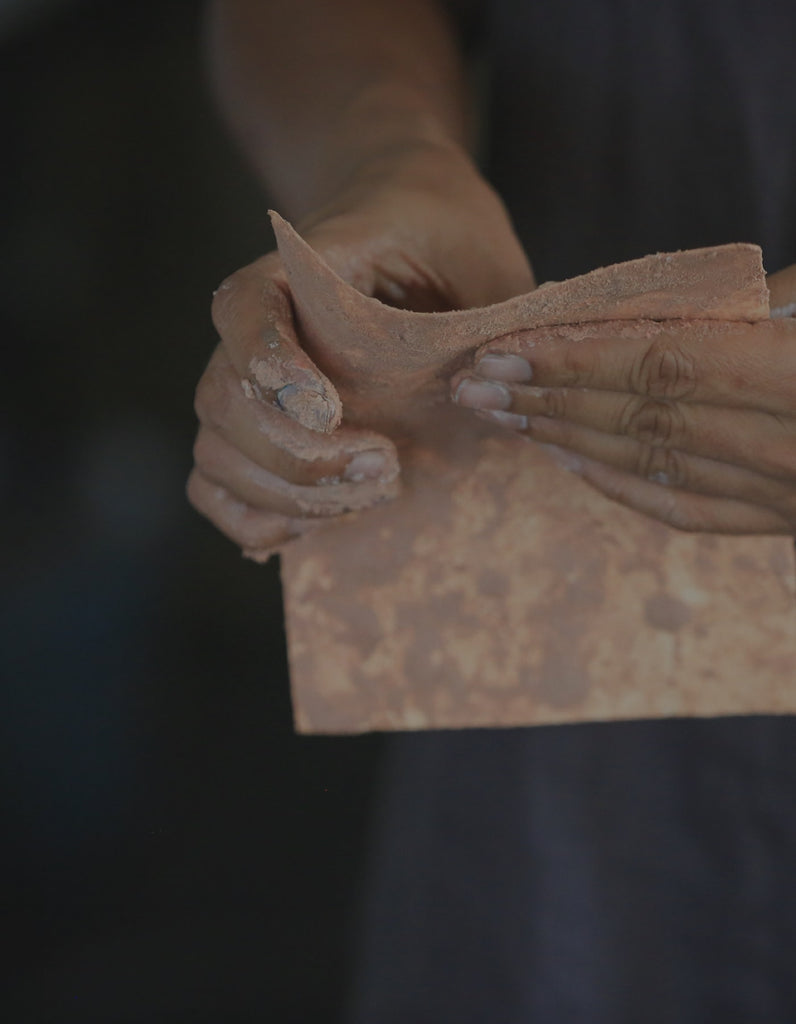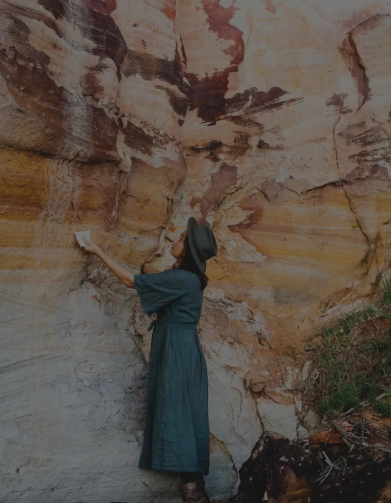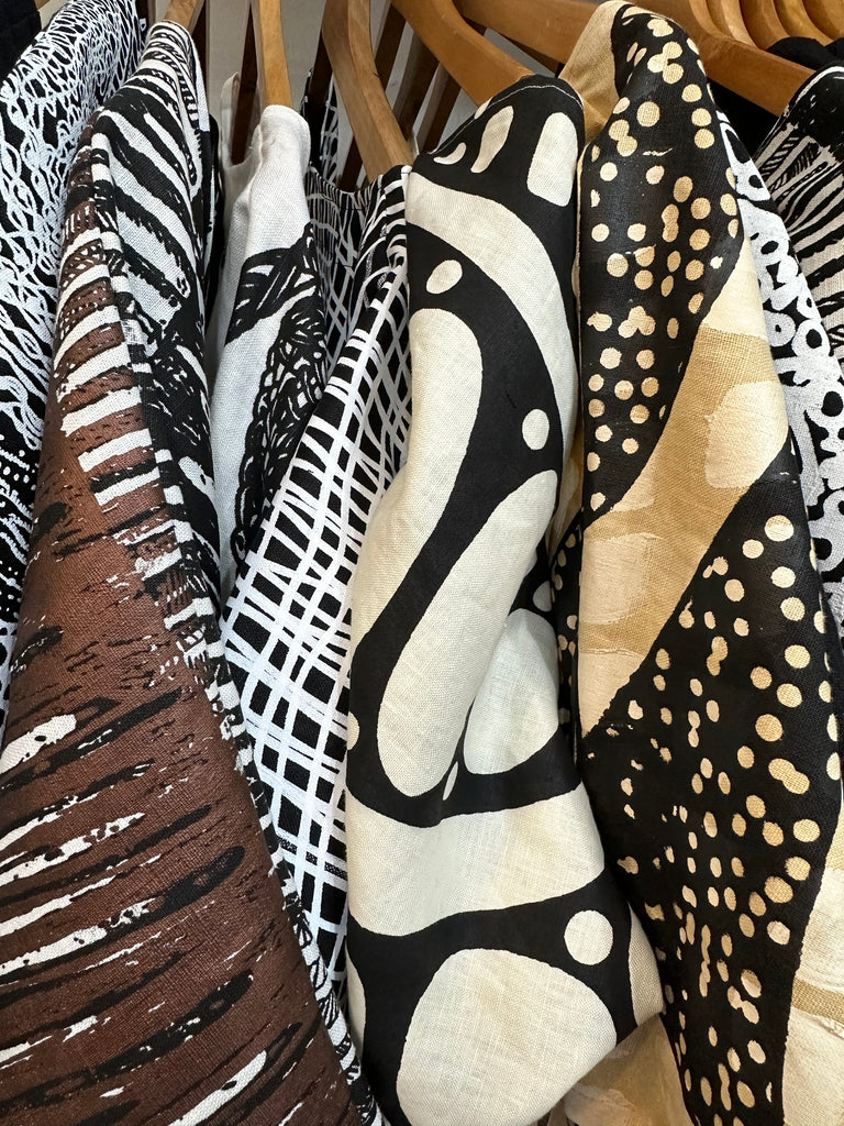 This is handprinted on linen in studio on Minjerribah North Stradbroke Island by Delvene Cockatoo-Collins.